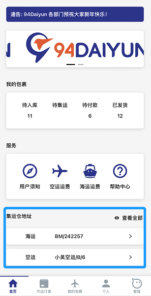 前往 94Daiyun 的代运订单,填写订单资料后点击提交即可。